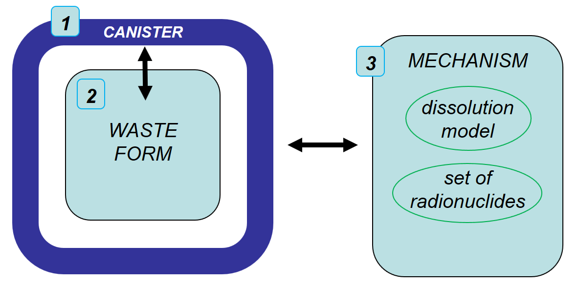 fractions), and a pointer to the waste form dissolution model. In some cases,